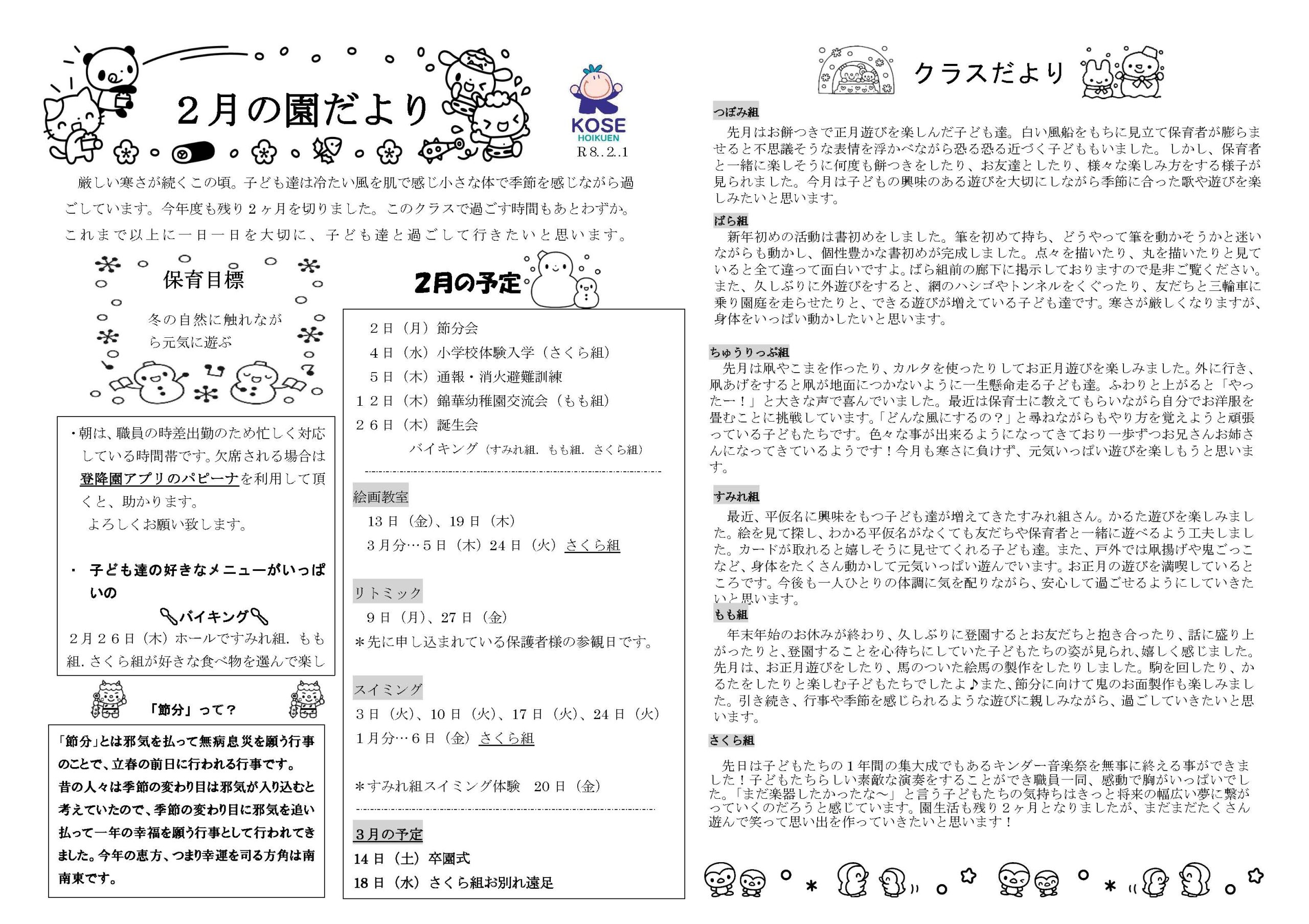 園だより、クラスだより、